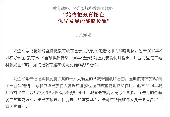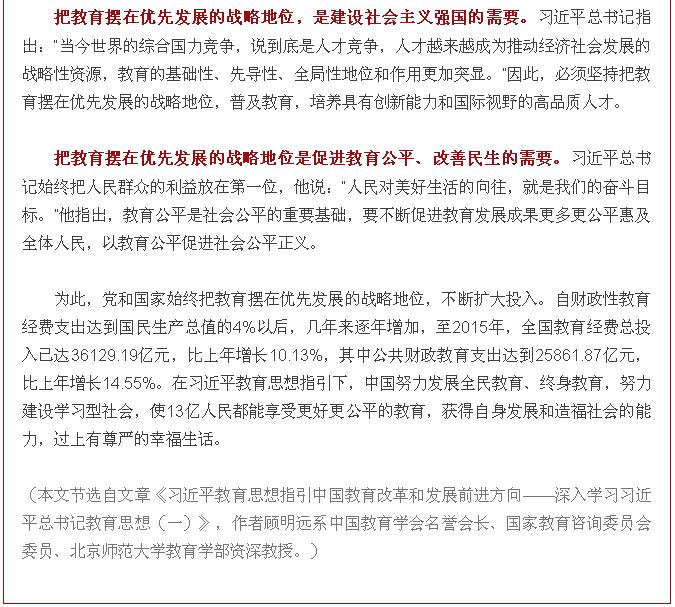 学习习近平教育思想④ | 习总书记谈教育优先发展:教育强则国家强
