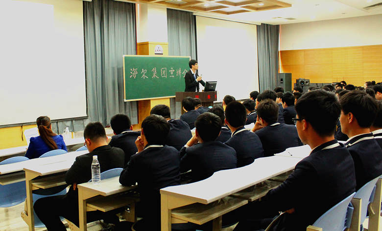 2015年5月19日,青岛海尔集团来我院举办专场宣讲招聘会。此次青岛海尔集团前来,提供基层生产管理类(生产班组长等)、设备操作维护保养类(操作、维修等)、投入产出类(采购、成本核算等)、现场质量控制管理类(內检、外检等)、物流仓储、统计类(物流、库管、统计等)、辅助管理文职类(后勤服务、内勤等)六个岗位,招聘计划在八十人左右。当日上午9点,青岛海尔集团人力资源科的高管,在我院一楼阶梯教室进行了精彩的宣讲,宣讲结束后进行了笔试,青岛海尔集团对我院实习学生笔试结果非常满意。当日下午人力资源科高管刘经理和招聘人员在我院教室进行面试。事后青岛海尔表示对我院学生整体素质给予高度评价,对参加面试的学生给予一致好评。面试学生96人,录取学生79人,录取率达到82%以上。