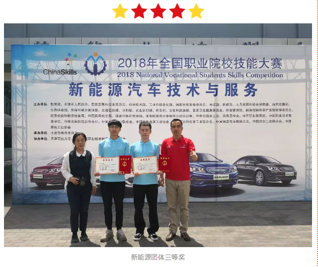全国职业院校高职组新能源汽车技术与服务大赛团体三等奖;