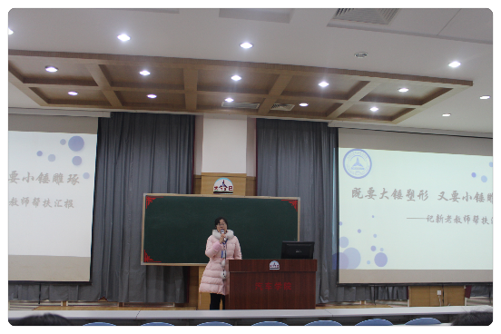 会上,8组师徒依次上台进行汇报。师傅们主要汇报了半学期以来如何对徒弟进行指导和帮助同时指出徒弟在现阶段存在的不足,紧接着由徒弟进行课堂教学展示。